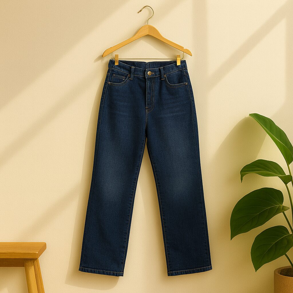 Jean azul oscuro con corte recto y calce cómodo. Un básico versátil y elegante para todos los días.