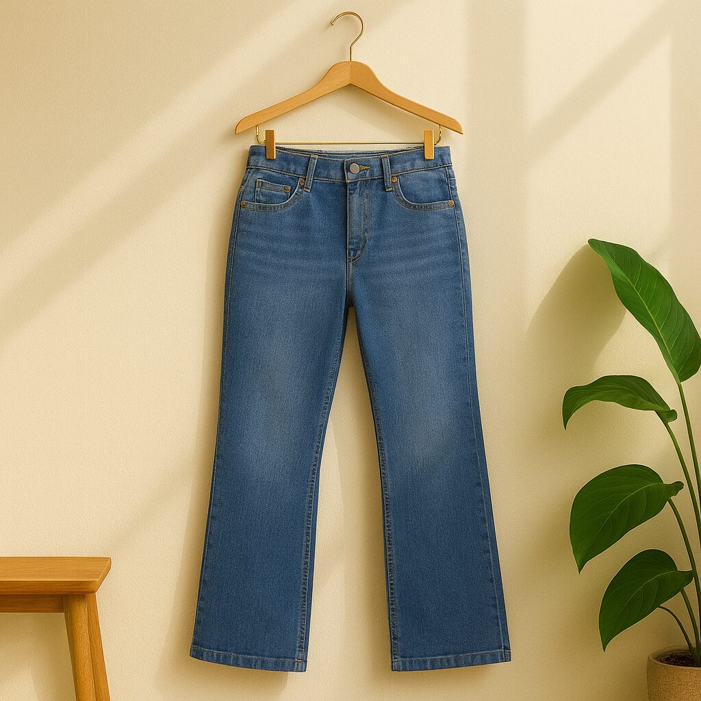 De tono celeste lavado, es perfecto para armar looks relajados de día o combinaciones más urbanas con camisas o blazers. Sus terminaciones prolijas y su tejido resistente lo convierten en un básico atemporal que nunca pasa de moda.