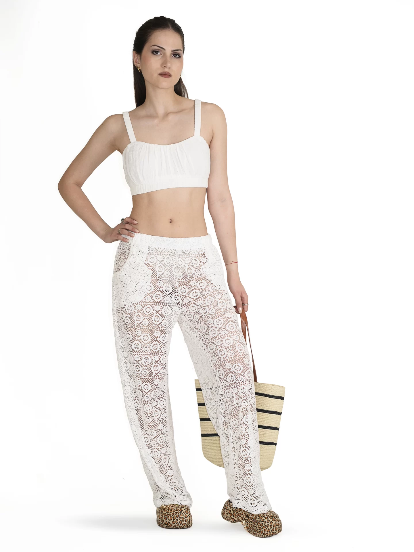 Palazo calado blanco, fresco y bohemio, ideal para un look de verano con estilo romántico y relajado.