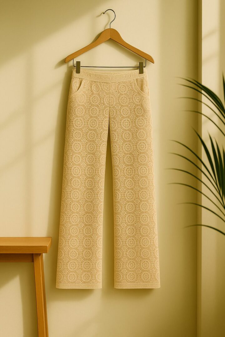 Una prenda ligera y femenina que transmite frescura y estilo bohemio. Confeccionado en tejido calado con diseño floral, este palazo aporta un aire romántico y relajado, ideal para usar en la playa, la ciudad o en salidas informales de verano.